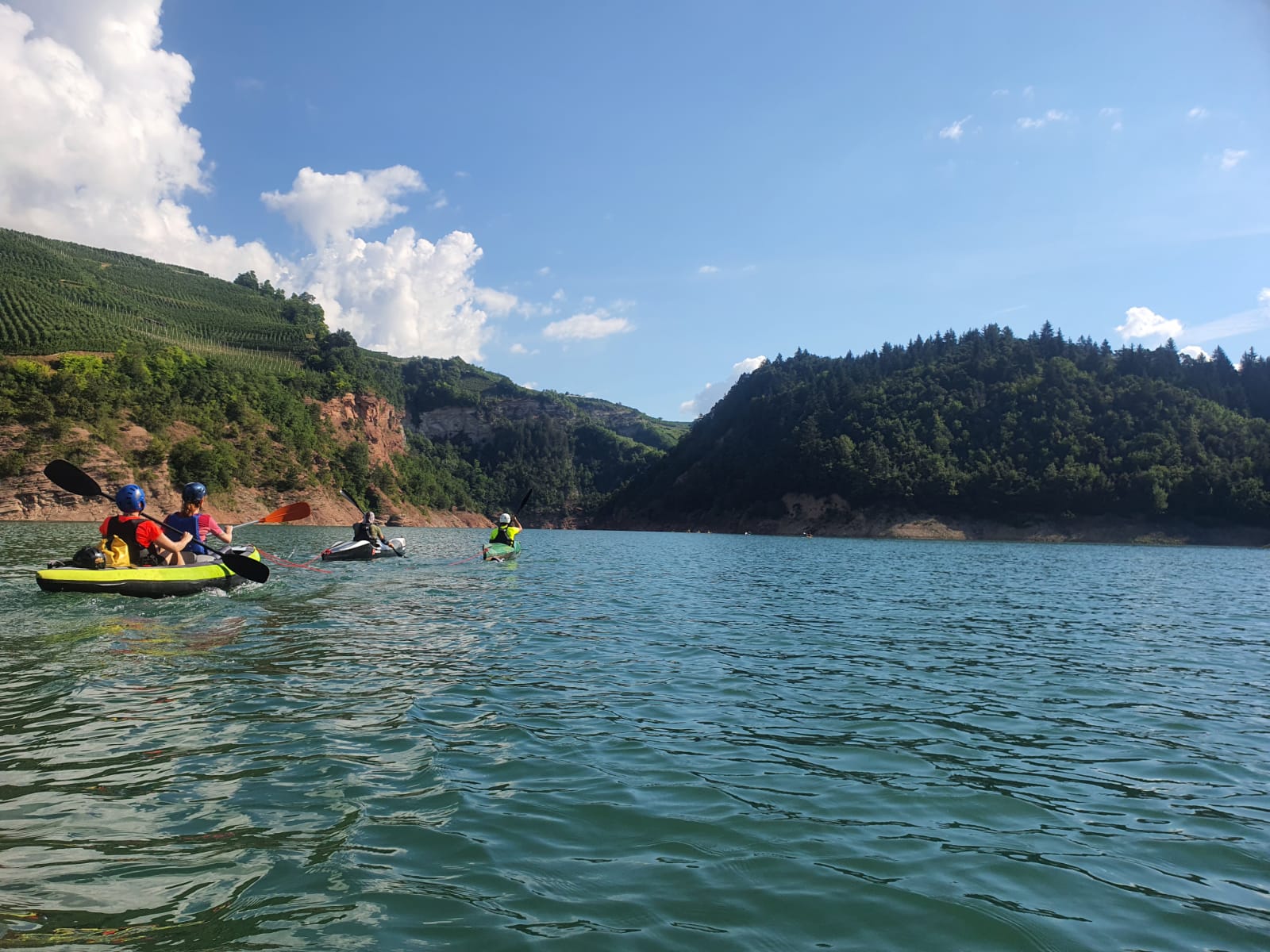 Credo si possa tranquillamente dire, e scrivere: non sono portata per canoa, kayak e affini, eppure da neofita, pur con qualche timore, mi sono tuffata nella gita al Lago di Santa Giustina. Mi ha convinto sapere che la compagnia sarebbe stata ottima, il supporto non sarebbe mancato e la Val di Non meritava almeno una sbirciatina.